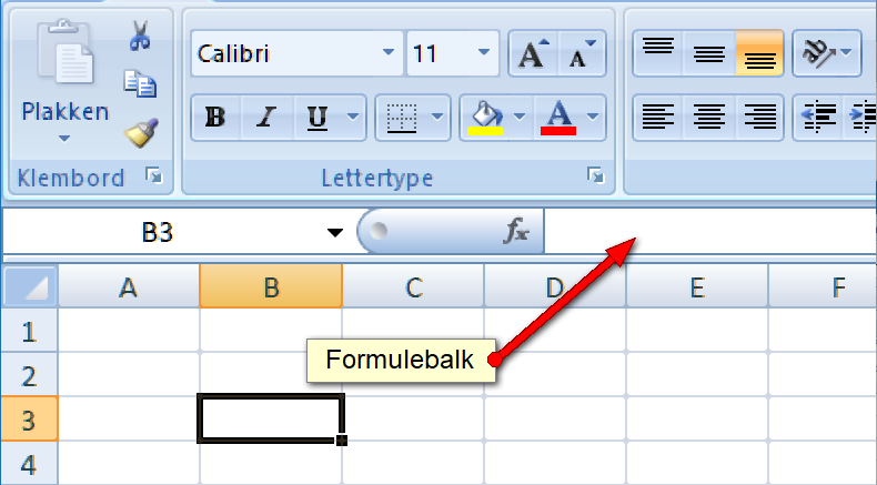 - Type OF direct in de cel OF in de formulebalk de gewenste formule. Begin bij berekningen altijd met het '=' teken.