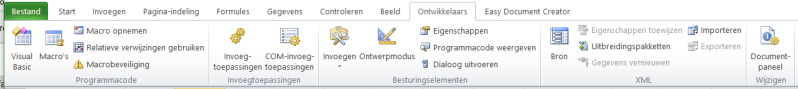 Standaard staat het tabje 'Ontwikkelaar' meestal niet in beeld.